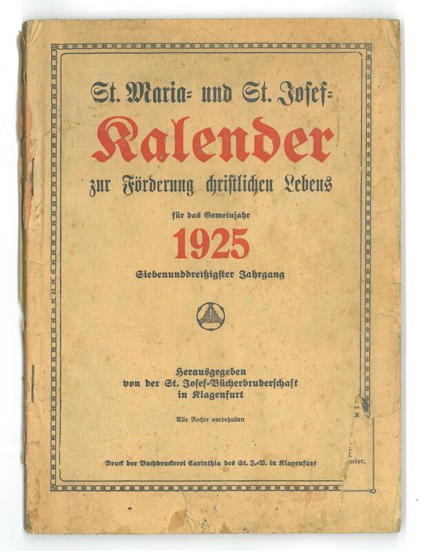 Das Heft ist stark beschädigt, v.a. am Einband; Es sind Bleistift-Notizen auf den Kalenderseiten zu finden; Im Heft sind wenige Bilder und auch Werbung abgedruckt.