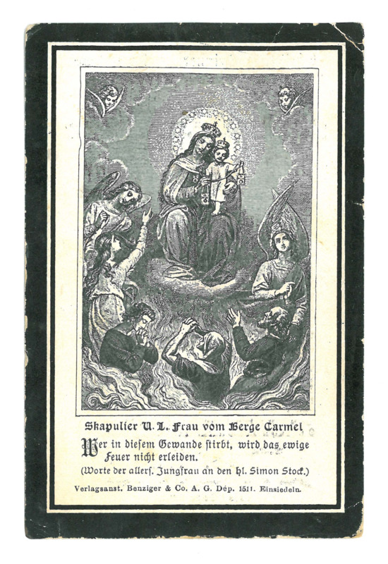 Vorderseite Bild: Skapulier U.L.Frau vom Gerge Carmel;