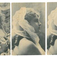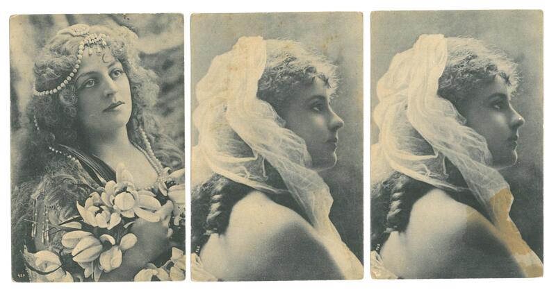 01, 02: Fotografie Frauenportrait schwarzweiß von der Seite; unbeschrieben