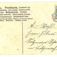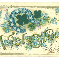Postkarte bestickt und geprägt; mit Goldrand und Blumenverzierung;