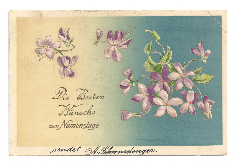 - 5-Heller-Briefmarke. Karte bunt, geprägt, mit Goldverzierungen.