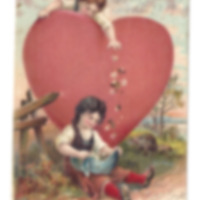 Farbige Postkarte mit einem Prägedruck; einem rotem großen Herz; zwei Kinder;