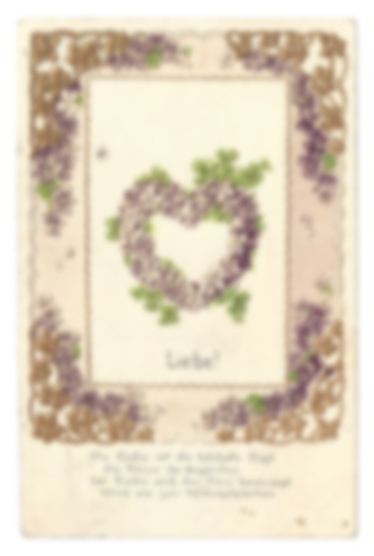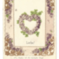 Farbige Postkarte mit vergoldetem Prägedurck. Blumen und Herz.