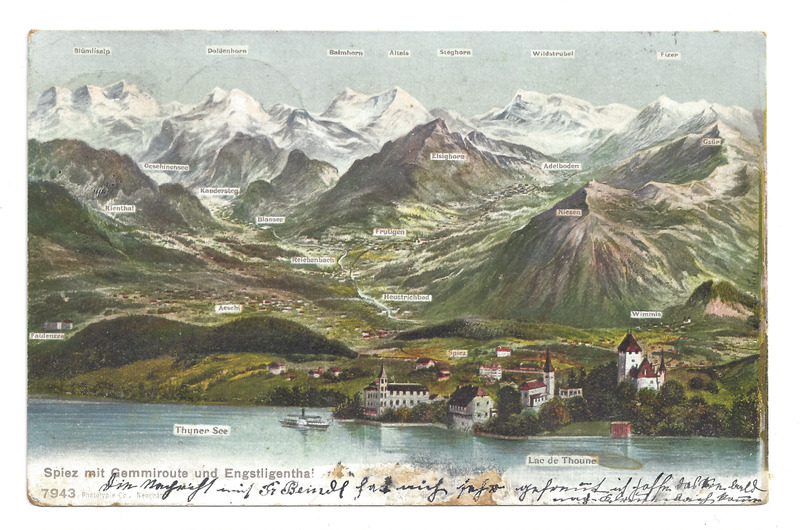 Postkarte Berge Spiez mit Gemmiroute und Engstligenthal