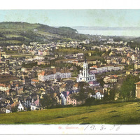 - Bunte Postkarte, auf der St. Gallen abgebildet ist; Abgestempelt in St. Fiden und einem anderen Ort.