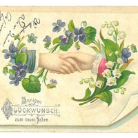 - Zwei Hände umrahmt von Veilchen und Maiglöckchen.