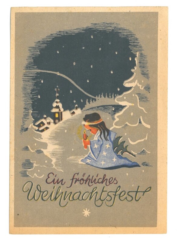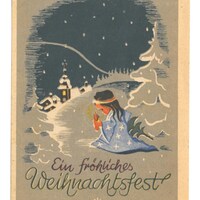 - Kleines Mädchen mit Kerze und Weihnachtsbaum in Winterlandschaft
