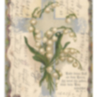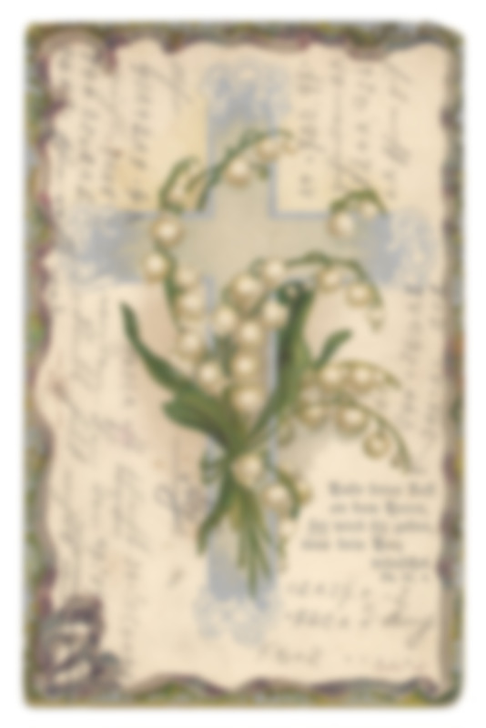 Postkarte mit silbernem Kreuz, Maiglöckchen und Psalm 37, 4;