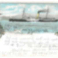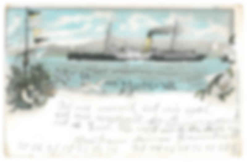- Korrespondenzkarte "Gruss vom Bodensee." mit Farbillustration eines Dampfschiffs afu dem Bodensee; auf der Vorderseite beschriftet.