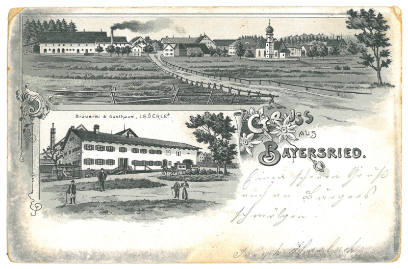 - Schwarzweiße Postkarte; Motiv: Gemeinde Bayersried; Briefmarke wurde entfernt; Poststempel von Hittisau