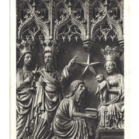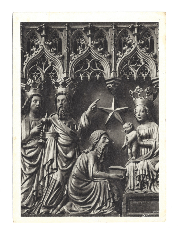 - Postkarte eines Details aus dem Wr. Neustädter Altar des Stephansdom Wien; Fotografie schwarzweiß; Absender unbekannt; gestempelt in Dornbirn