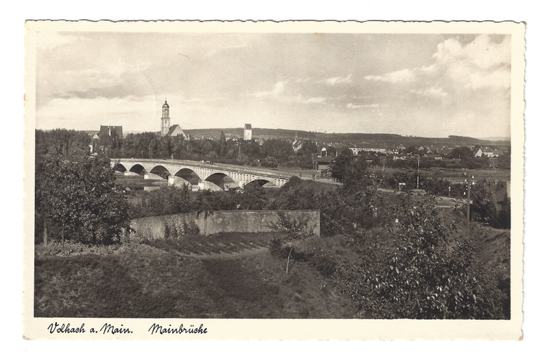 Postkarte; Mainbrücke Volkach a. Main; Fotografie schwarzweiß;