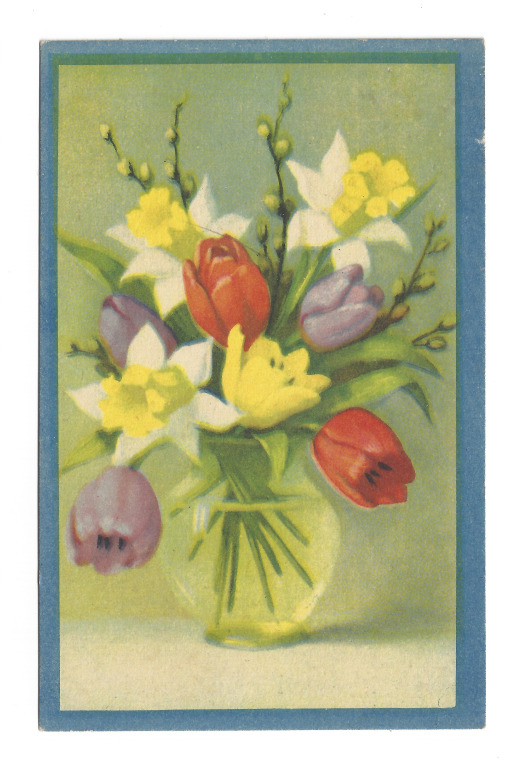Postkarte mit Tulpen und Narzissen;