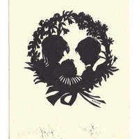 Der Scherenschnitt-Aufdruck auf der Bildseite stellt drei Kinder dar, deren Köpfe von einem Blumenkranz umgeben sind, zwischen dessen Schleifen "H. Zadnik" steht; Abgestempelt wurde die Postkarte am 1935-11-18 in Bregenz; 12-Groschen-Briefmarke;