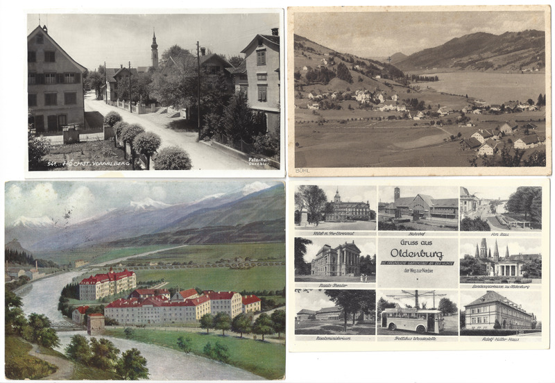 04: Verschiedene Bilder aus Oldenburg; (Gruss aus Oldenburg / Die freundliche Gartenstadt an der Hunte / der Weg zur Nordsee / Schloß m. 91er Ehrenmal / Bahnhof / Am Stall / Staats-Theater / Landessparkasse zu Oldenburg / Staatsministerium / Trollibus Wendestelle / Adolf-Hitler-Haus)
