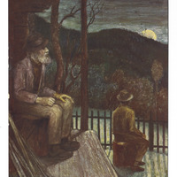 - Postkarte; Druck eines gemalten Bildes (Schiestl: Feierabend); Die Karte wurde am 1938-02-11 in Dornbirn abgestempelt; 12-Groschen-Briefmarke (Oberösterreich)