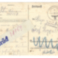 Die Karte wurde zurück an Julius Salzmann gesendet; was auf ihr vermerkt wurde; Die Adresse von Josef Hagspiel wurde durchgestrichen; Ein Papierstreifen mit "Zurück 31059" wurde über den Text von Hermann aufgeklebt.