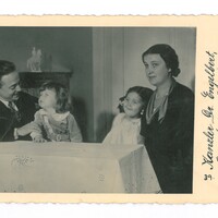 Die gestanzte Ansichtskarte zeigt die Familie Dollfuß; neben dem Bild folgende Beschreibung: